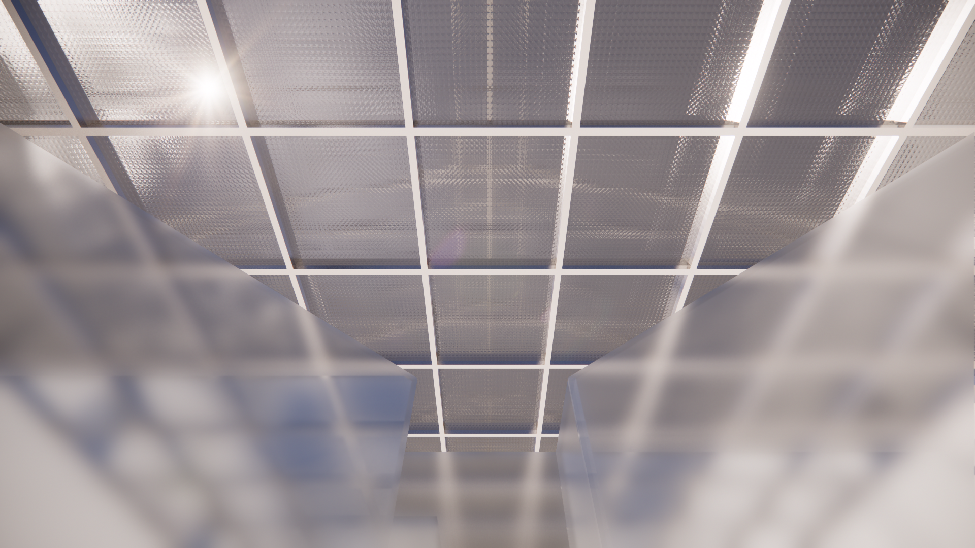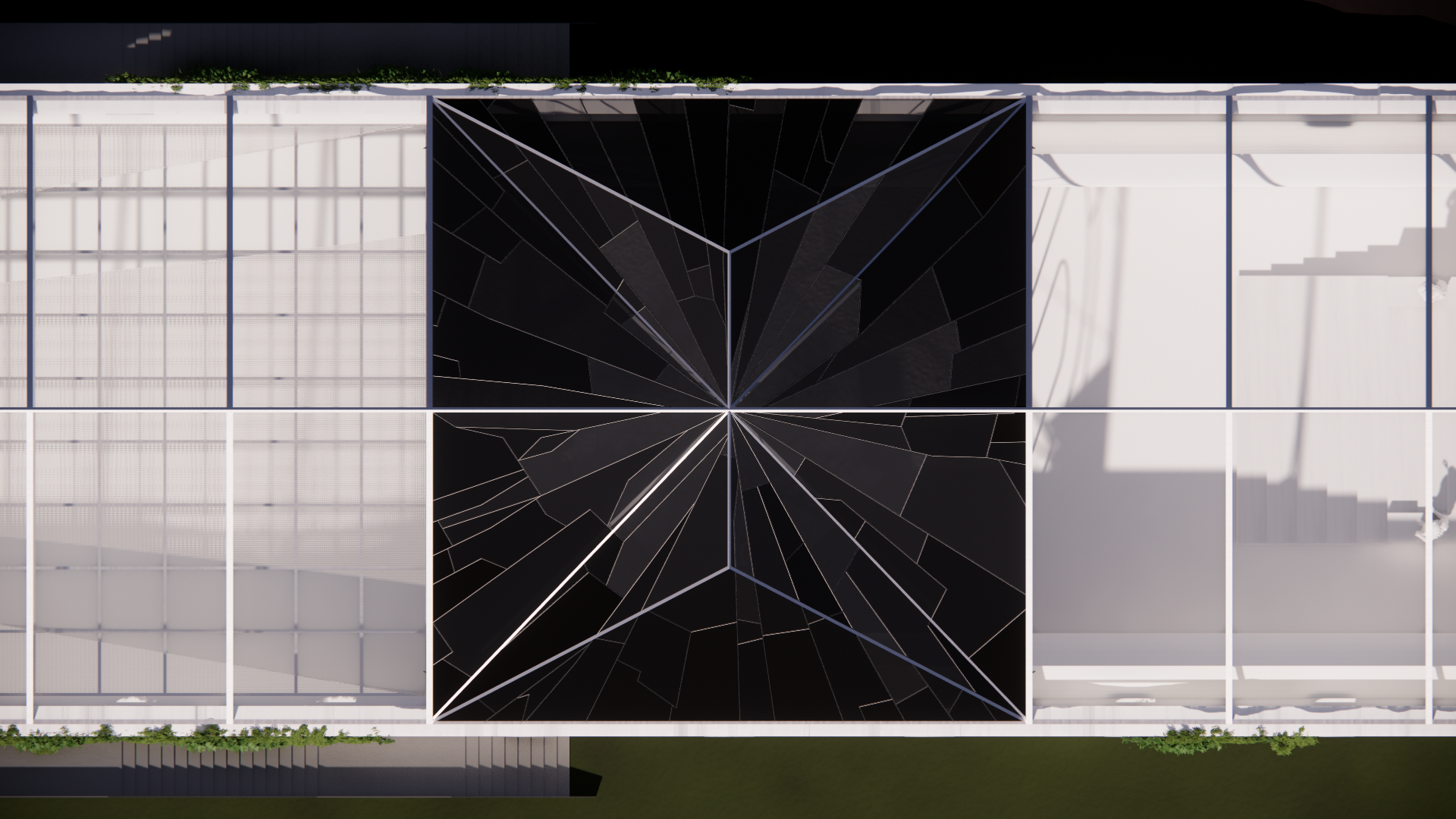 The shattered mosaic glass roof symbolizes the release of the individuals' pent-up emotions.