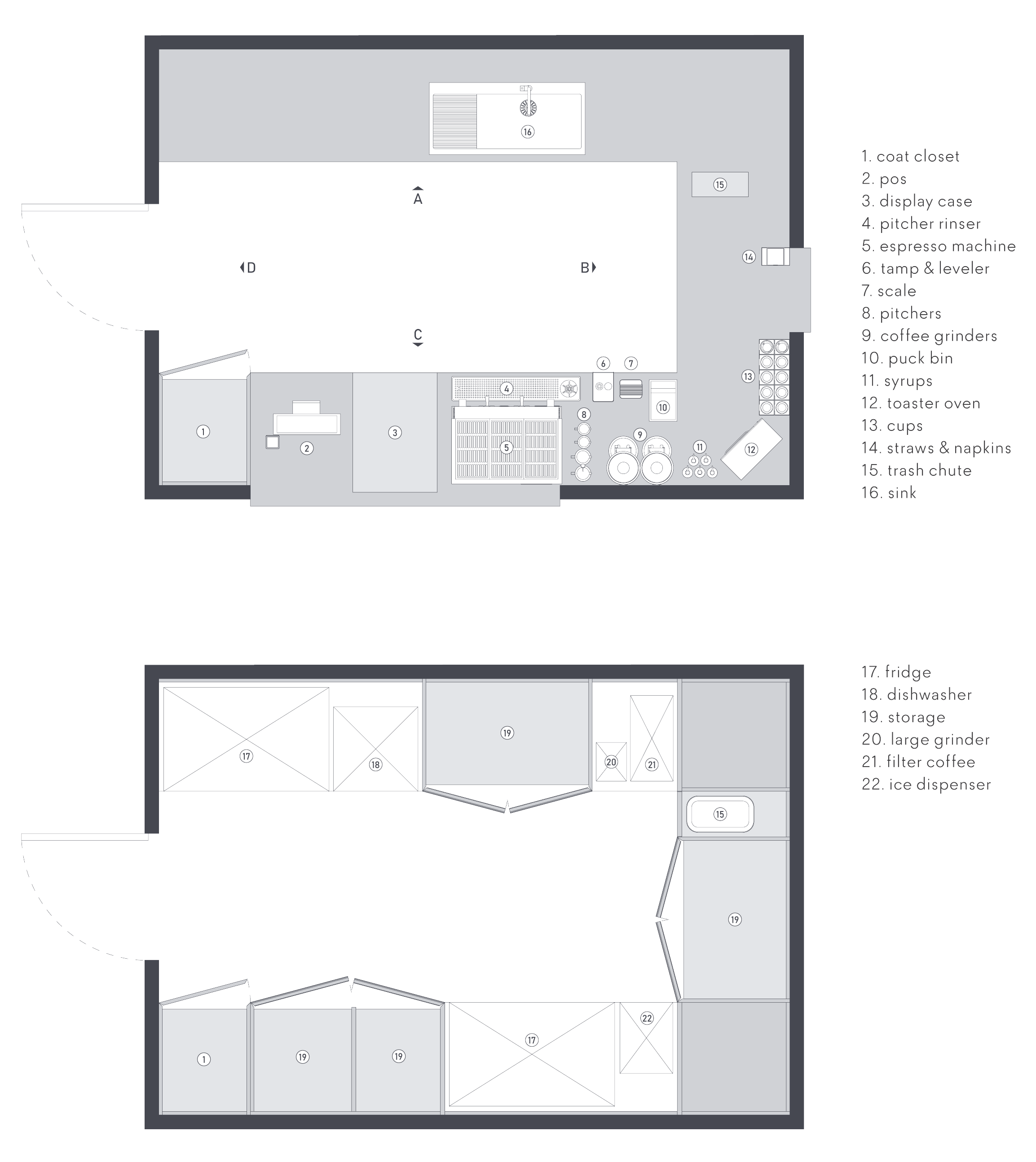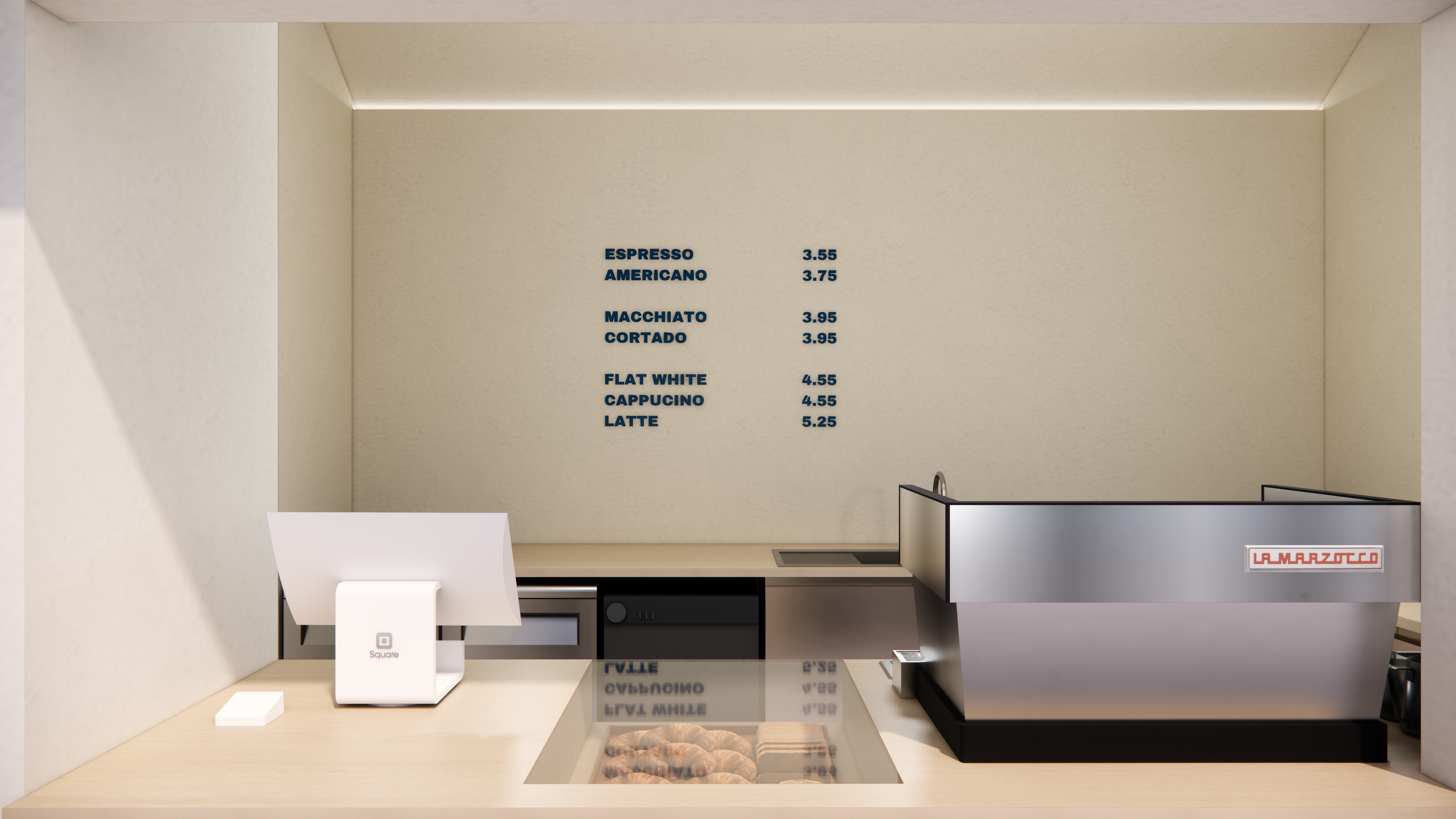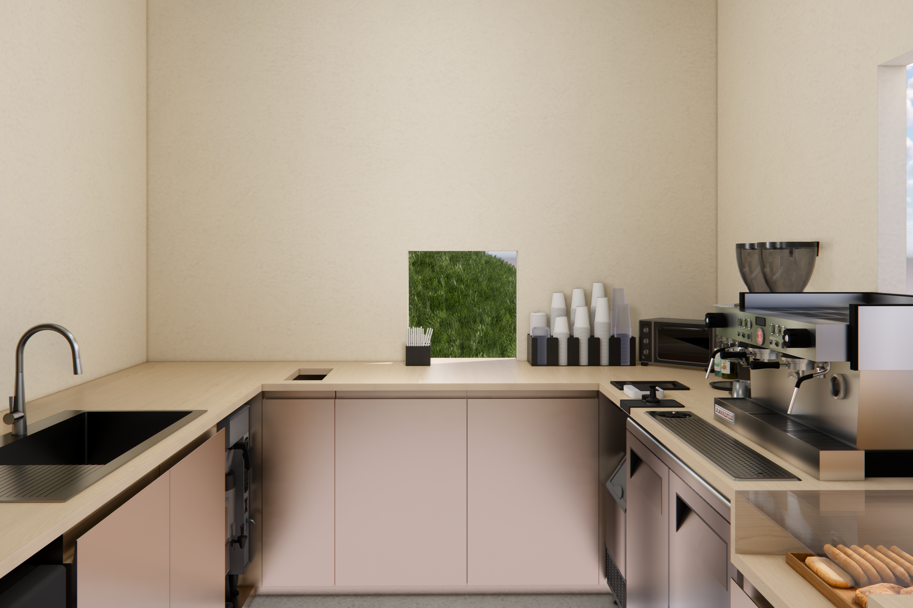 Hence, the design aims to optimize workflow efficiency for a single barista within a compact space.