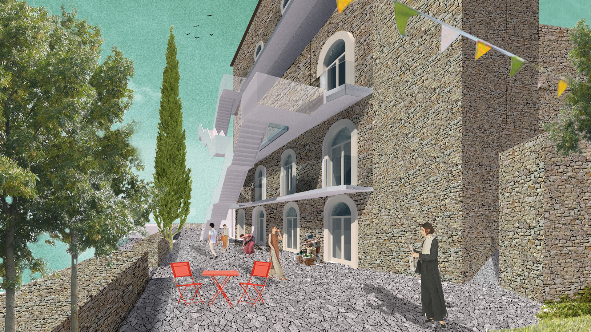 The fortezza is revitalized through the introduction of a new Academy of Arts, creating a dynamic hub that attracts students and visitors throughout the year.
