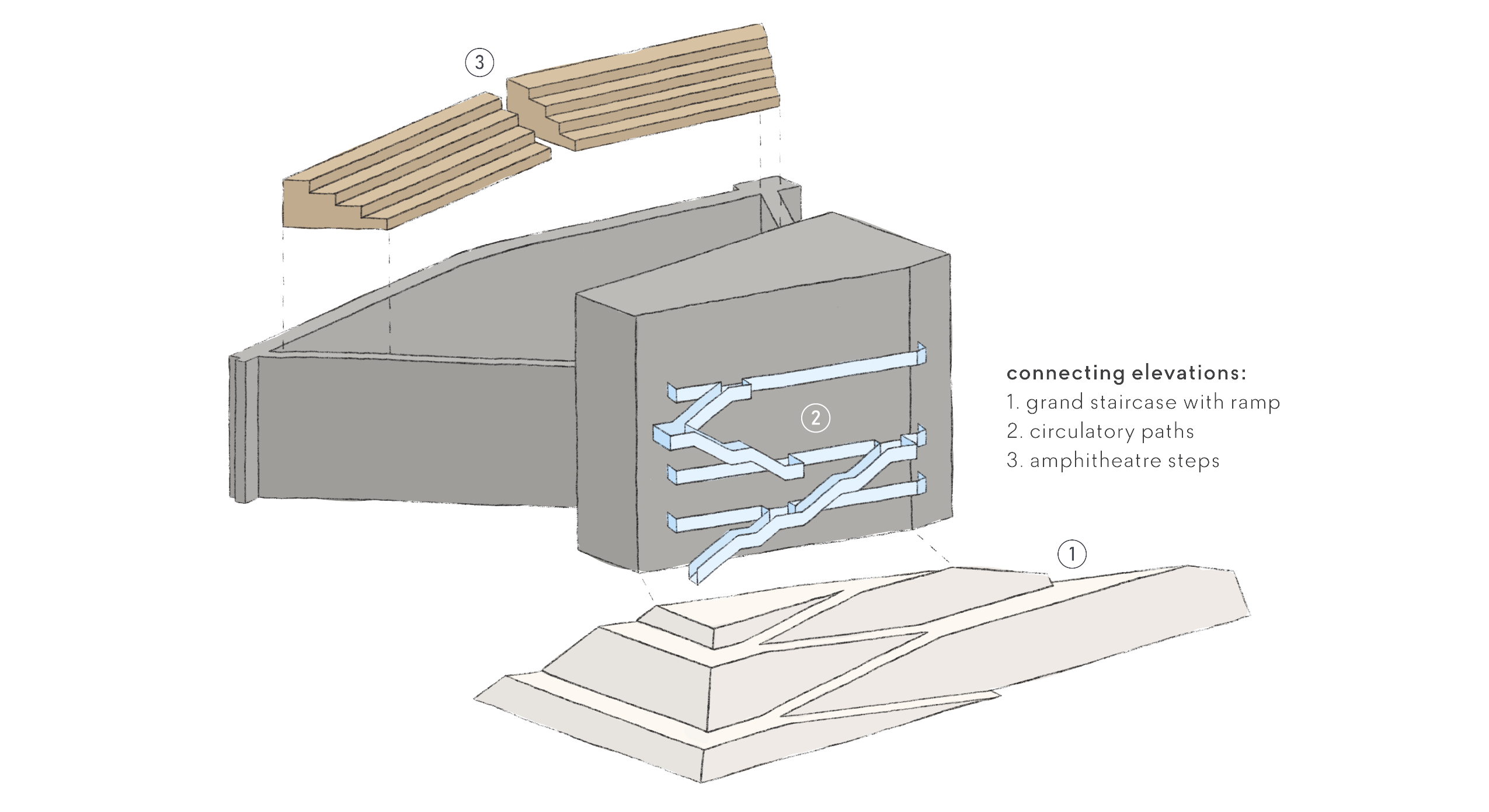 The project redefines existing circulation paths with contemporary interventions, seamlessly connecting the main public areas. It seeks to bridge the divide between historical and modern elements, as well as between locals and visitors, thereby fostering a renewed identity within the castle’s enduring legacy.