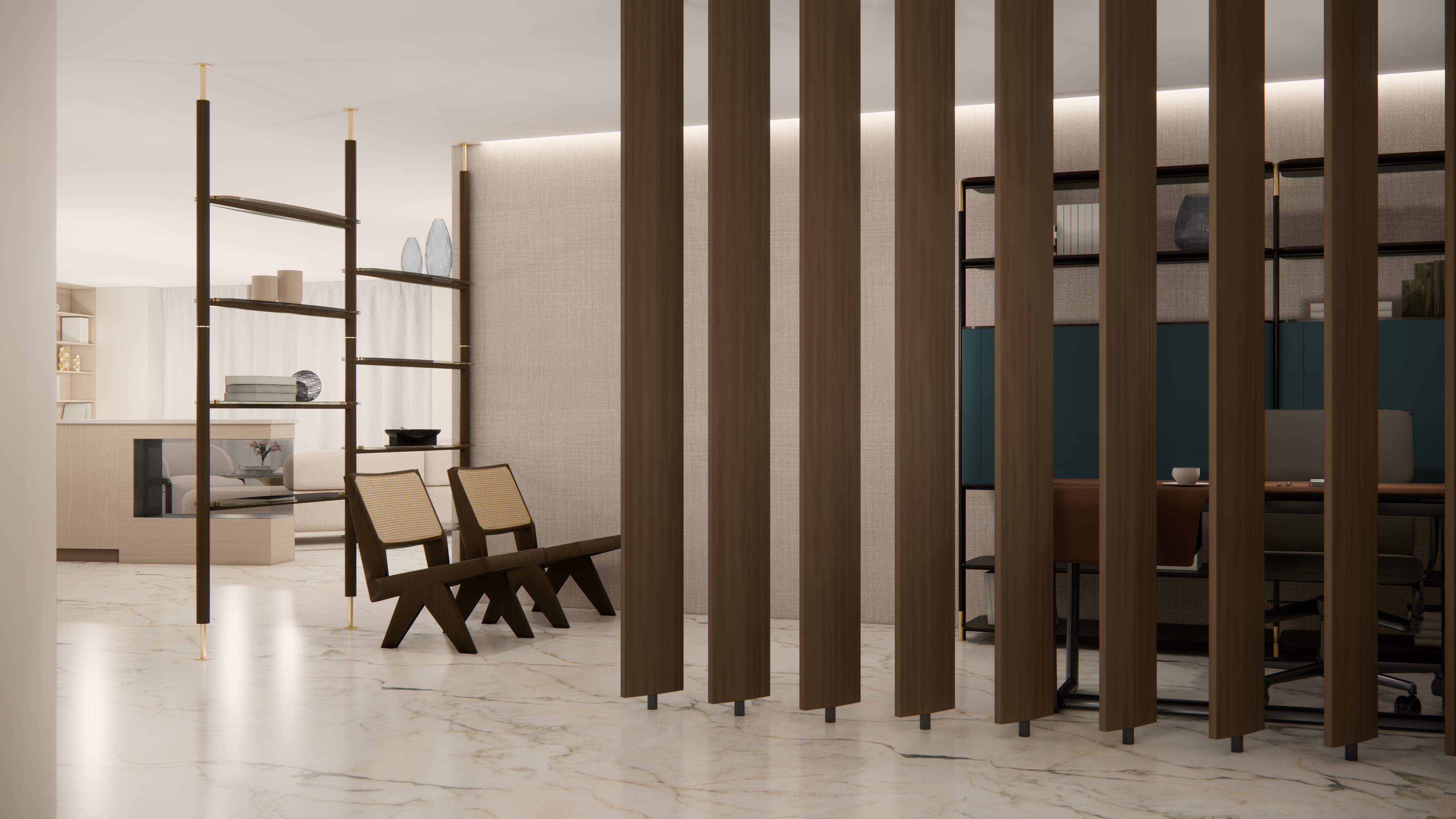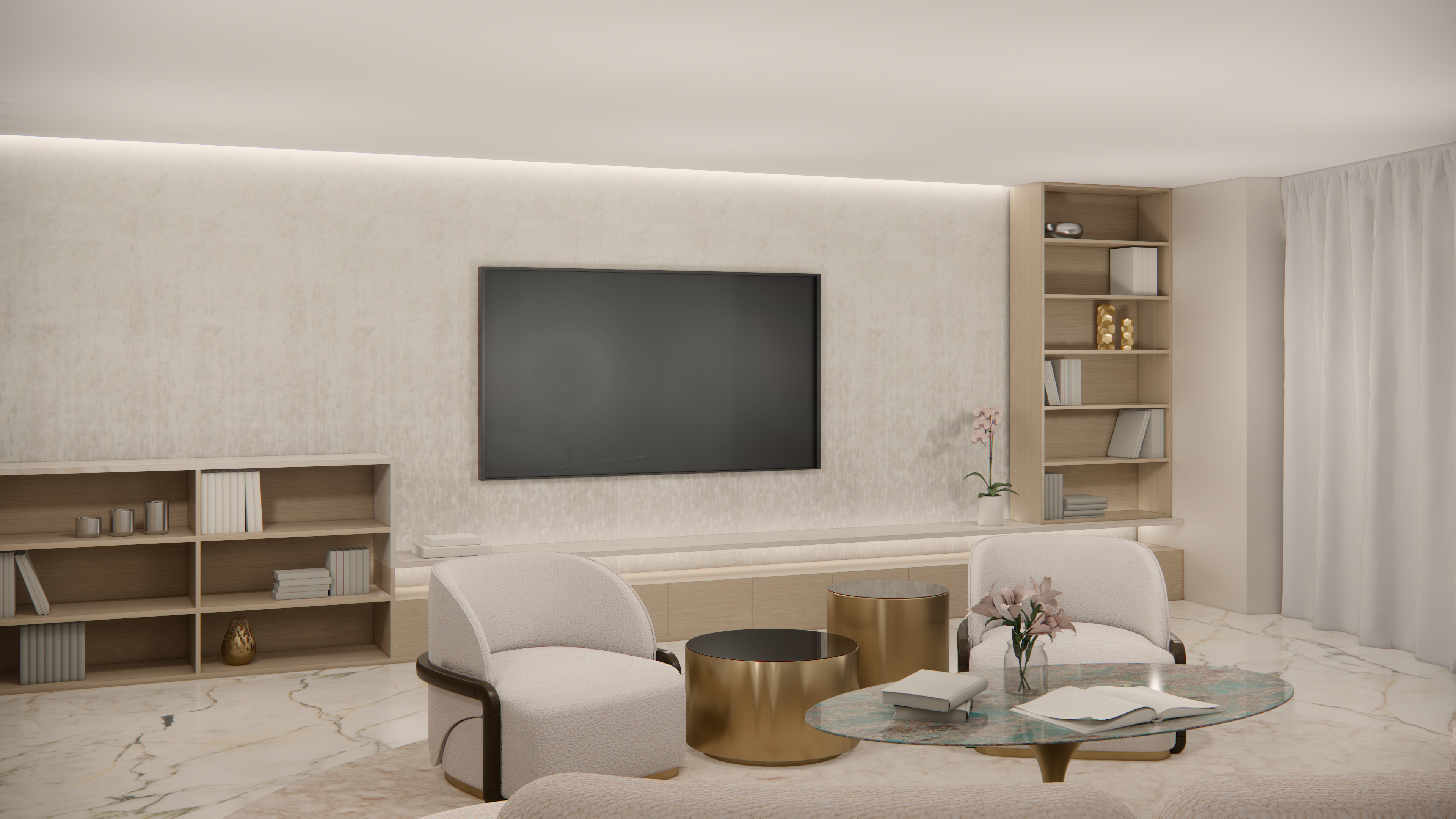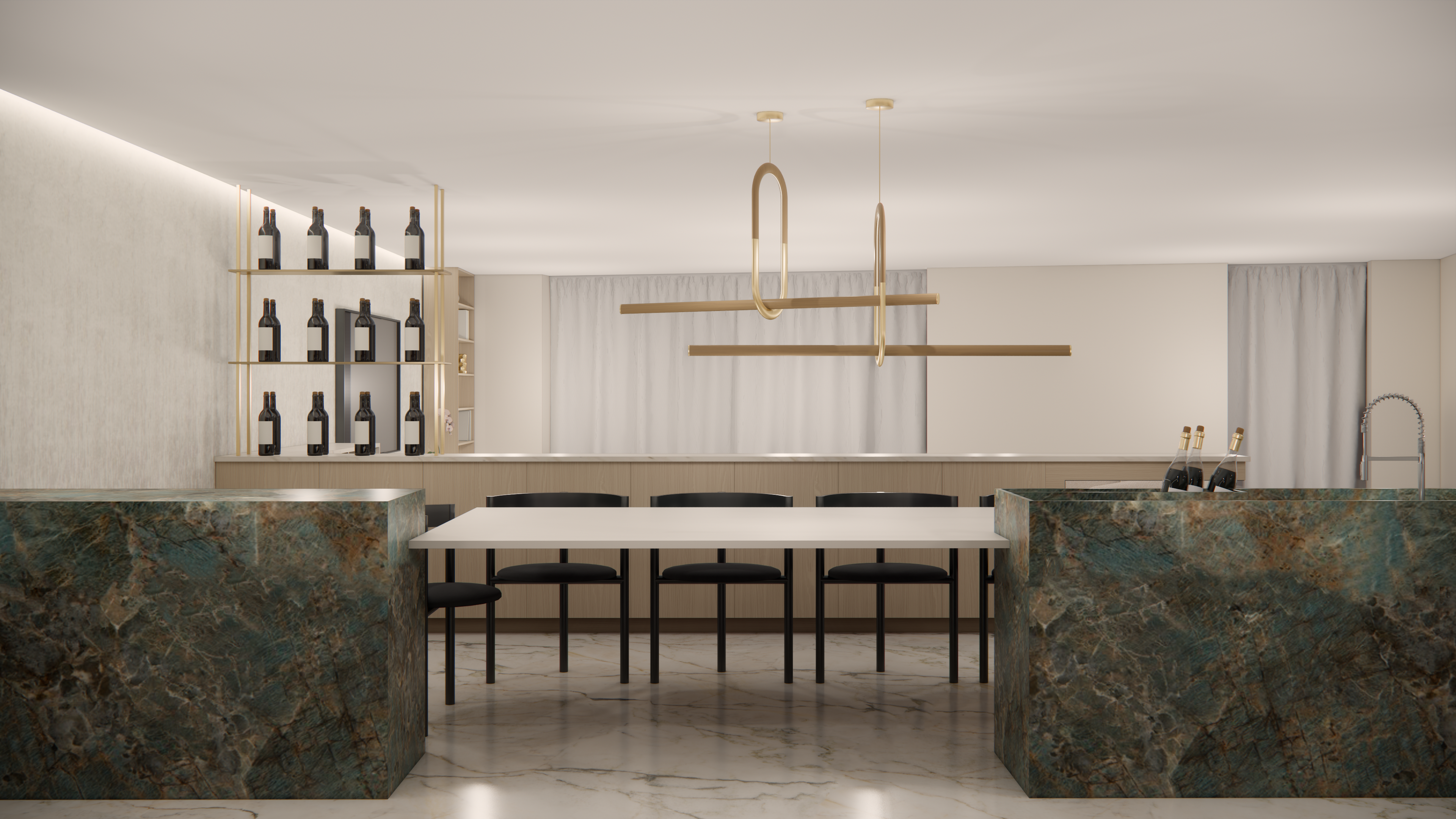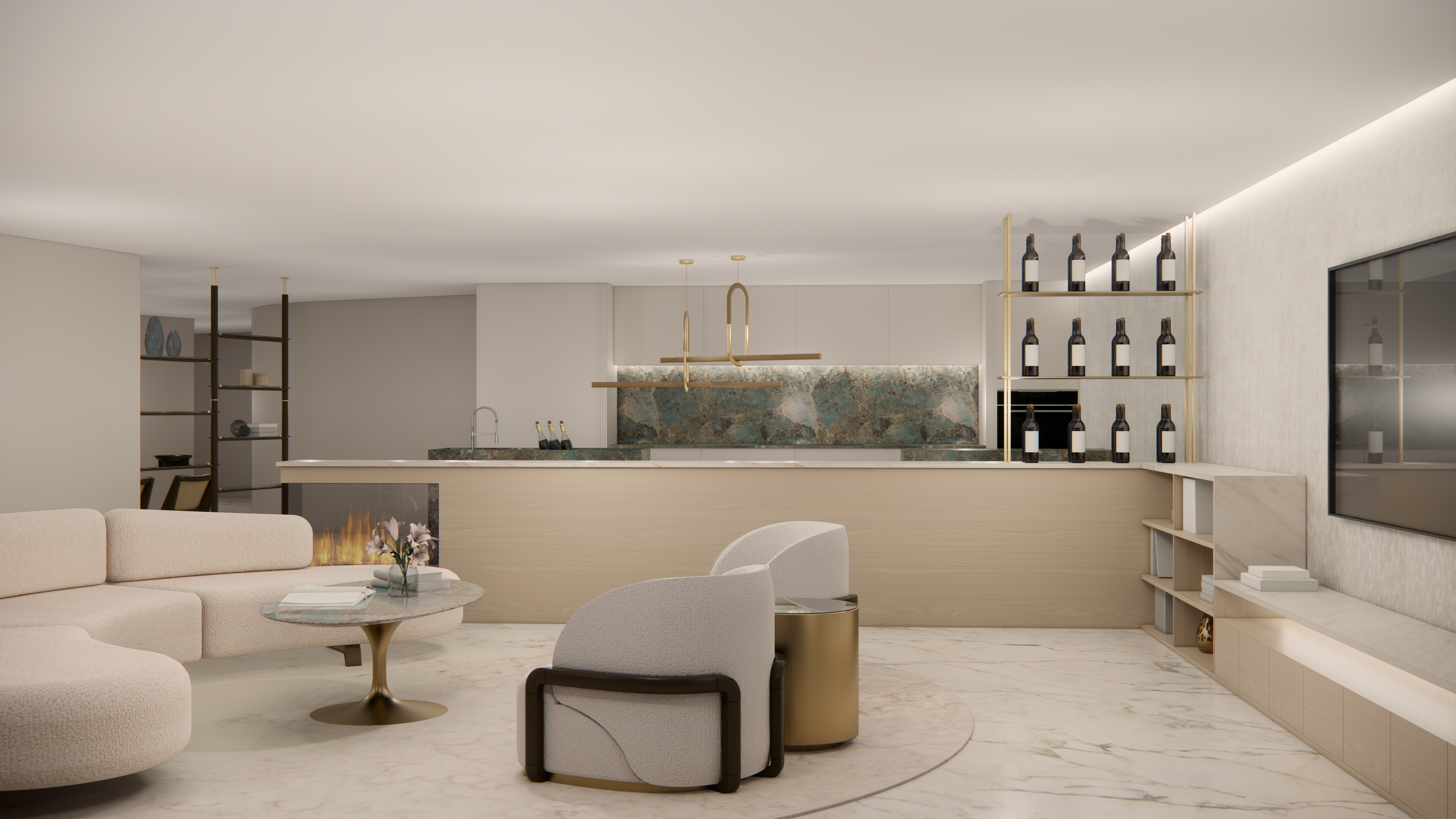 This series of renderings showcases the renovation of a luxury condo in London, UK.